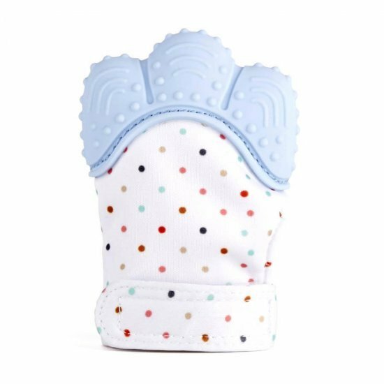 دستکش دندانگیر : یکی از پر کاربرد ترین انواع دندانگیر، دستکش دندانگیر می باشد . در دوران رویش دندان ها اکثر نوزادان از انگشتان خود برای کاهش درد و خارش لثه استفاده می کنند . لذا این نوع لثه گیر می تواند جایگزین مناسبی به جای استفاده از انگشتان برای آرامش و التیام درد لثه شود . این نوع دندانگیر دارای سر سیلیکونی نرم همراه با نقاط برجسته جهت تسکین خارش لثه می باشد و به دلیل داشتن بند چسبی در قسمت مچ دست می توان به راحتی سایز ان را تنظیم کرد .